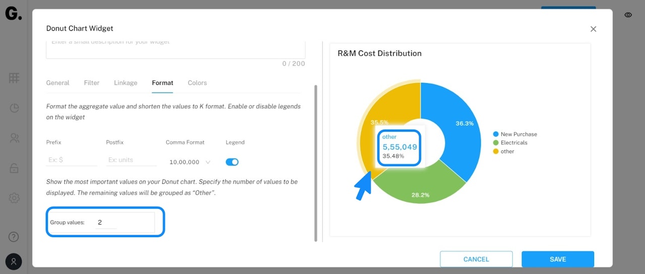 This lets you easily see the relevant data. Simply, specify the number of values to be displayed. The remaining values will be grouped as “Other”.