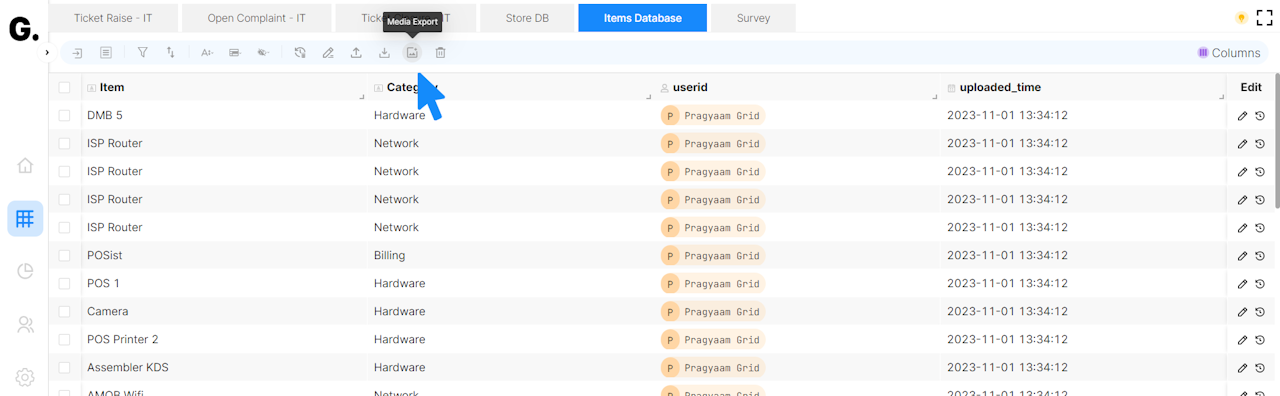 Super Admins can export or save media from media column recorded in the worksheet using 'Media Export' operation in the view page.