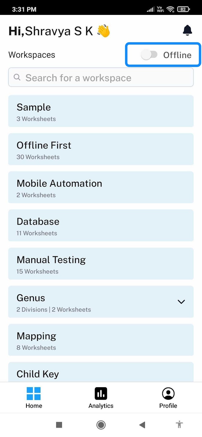 Once you make an offline entry to any number of worksheets, ‘Sync All’ option appears automatically on the home page.