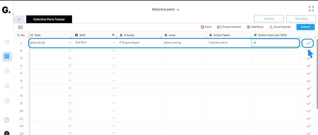 Data entered in the "Enter Data" view will now submit in bulk. The green tick button will validate the entered data.